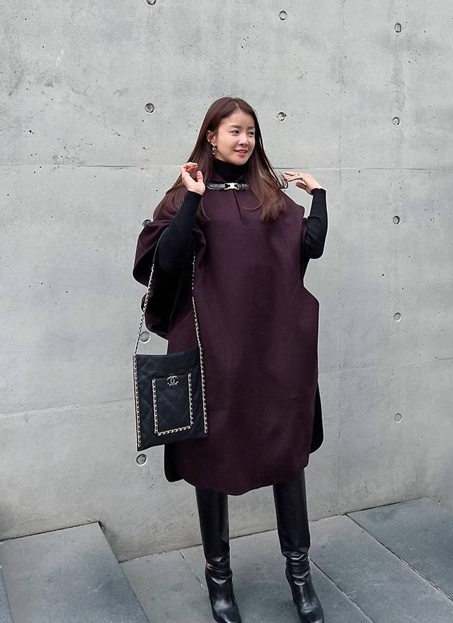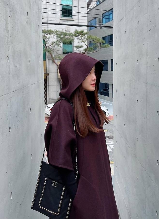 공개한 사진에서 이시영은 와인 컬러의 케이프 코트를 입고 후드를 써 마치 마녀나 마법사를 연상시키는 스타일리시한 외출룩을 완성했다.