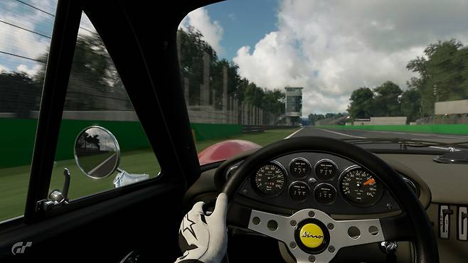 어쨌든 그 차를 몰고 몬자 서킷에 올랐다. 페라리는 대중 모델에도 페라리의 DNA를 꾹꾹 눌러서 담아낸다. 엔진 회전이 심금을 울리는 것과 동시에 직진 안정성이 굉장히 좋다는 게 느껴진다. 옛날 자동차임에도 불구하고 직선에서 약간의 흔들림 정도는 의연하게 잡아낸다는 게 인상적이다. 이 시대에 전자 장비는 존재하지도 않았을 텐데, 스티어링을 잡고 있는 것만으로도 안정감이 고스란히 다가온다. 대중적인 자동차의 기본 같은 것일까.