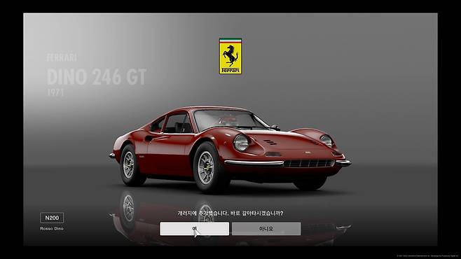 디노 246 GT를 수령하기 위해서는 두 가지 관문을 거쳐야 한다. 첫 번째는 생각보다 많은 게임머니를 모으는 것, 두 번째는 ‘뮤제오 엔초 페라리’를 찾는 것이다. 서자이지만 그래도 페라리의 이름을 달고 있어서인지, 그란투리스모 내에서 일반 모델보다 더 비싼 50만 Cr.을 지불해야 한다. ‘쇼 미더 머니’ 같은 치트키가 존재할 리도 없으니, 라이선스 및 도전 과제를 하나하나씩 클리어하며 돈을 모아야 한다 시간이 꽤 걸리는 일이다.