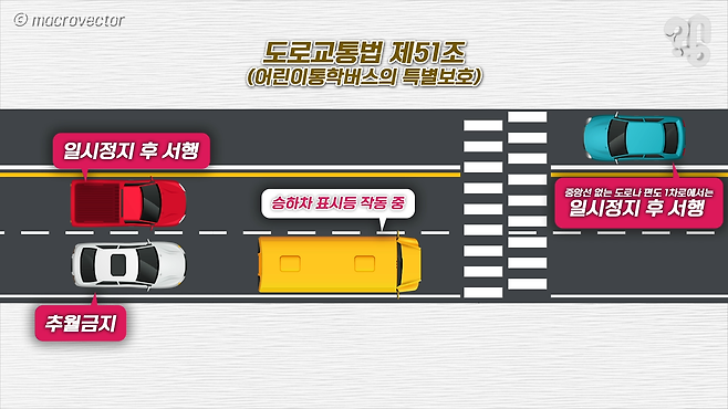 이를 위반하셨을 경우에는 승용차 기준 범칙금 9만 원에 벌점 30점이 부과되므로 주의하시고 굳이 범칙금과 벌점이 아니라 하더라도 우리 아이들의 안전을 위해서 통학버스 인근에서는 안전하게 운전해 주셨으면 좋겠습니다.