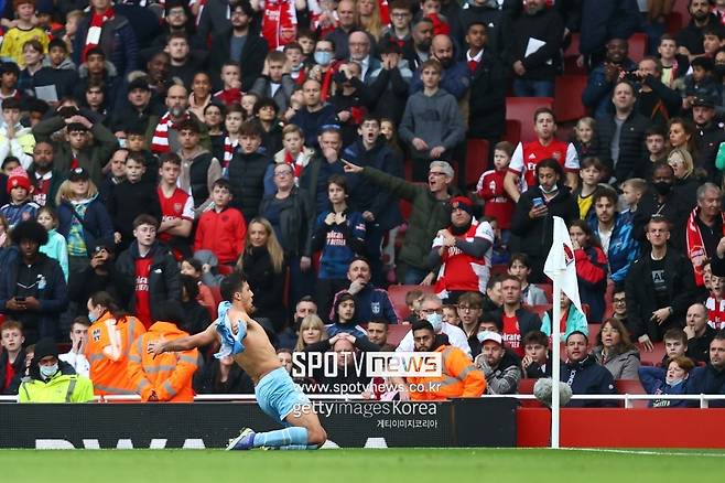 뒤집힌 결과에 낙담했을 아스날 홈팬들에게 유니폼을 벗으며 달려간 로드리, 난무하는 욕설과 자신을 향해 날아오는 이물질에도 동료들과 함께 기쁨을 표했습니다.