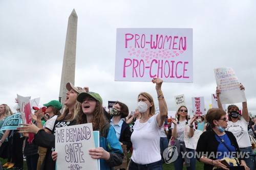 epa09947242 Abortion rights supporters gather near the Washington Monument as they prepare to march to the Supreme Court in Washington, DC, USA, 14 May 2022. Protests and rallies continue all over the US in reaction to the opinion on a leaked draft that suggested the United States Supreme Court could soon overturn the legalization of abortion in the Roe v. Wade case of 1973. EPA/MICHAEL REYNOLDS