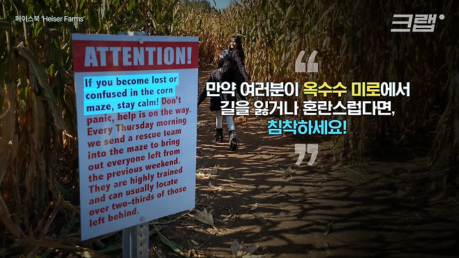 실제로 미국의 3살 아이가 옥수수밭에서 길을 잃어