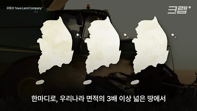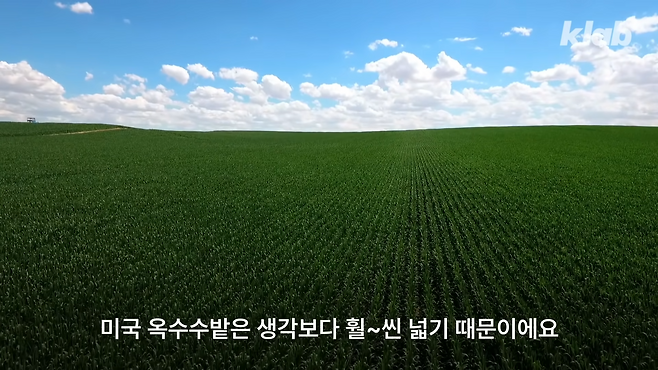 미국의 옥수수밭의 크기는 무려 우리나라 면적의 3배 이상입니다.