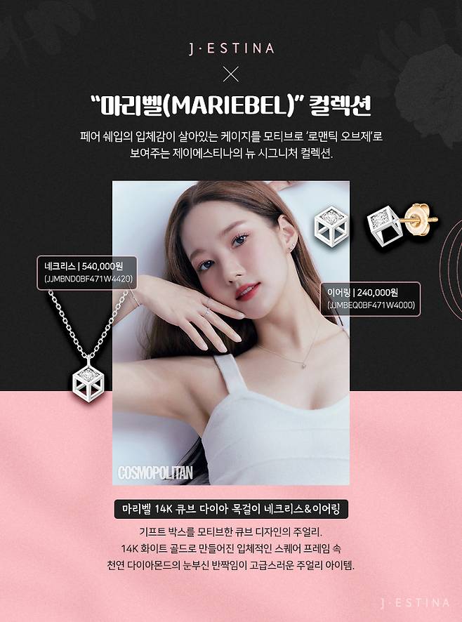 한편 마리벨 14k 큐브 디자인의 목걸이와 귀걸이는
