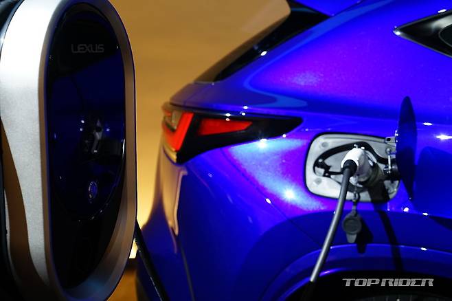 NX 450h+에는 총 96개의 셀로 구성된 18.1kWh 리튬이온 배터리를 탑재해 1회 충전 순수 전기 주행 거리가 약 56km(복합 기준)에 달한다. 충전구는 완속 충전용 AC 단상이 적용되며, 6.6kW OBC(온보드 차저)가 탑재된다. 32A 완속충전기로 약 2시간 37분만에 충전된다.
