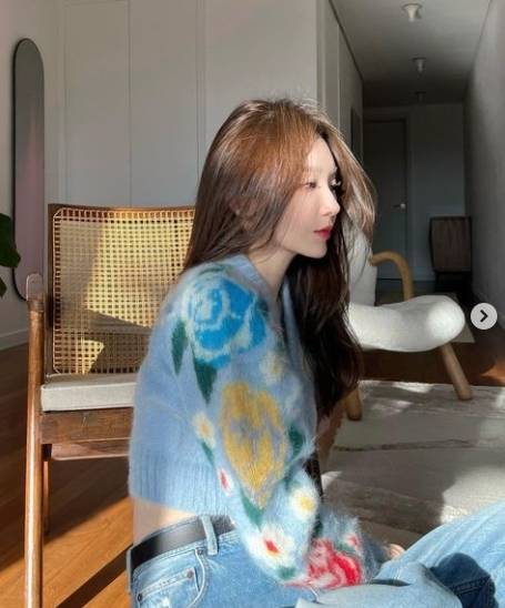 공개된 사진에는 집에서 자연스럽게 포즈를 취하고 있는 강민경의 모습이 담겨있다.