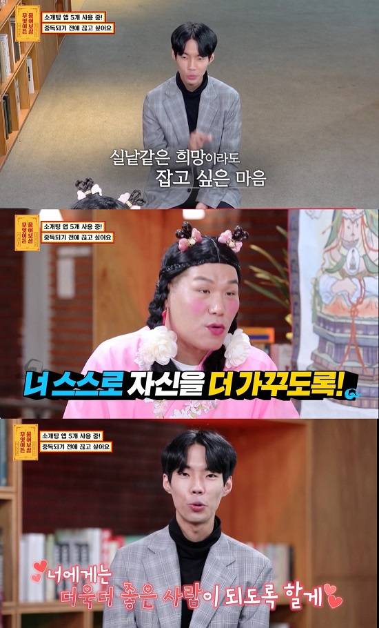 (엑스포츠뉴스 백민경 인턴기자) 24일 방송된 KBS joy '무엇이든 물어보살'에서는 소개팅 어플에 중독된 남성의 사연이 공개됐다.