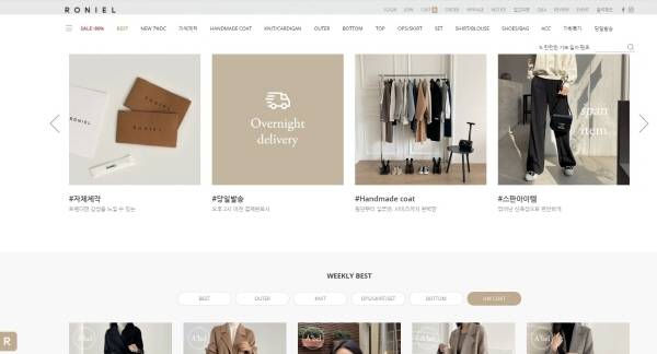 ‘로나 팬츠’로 유명해진 키작녀 쇼핑몰 로니엘은 사랑스러운 데일리 룩을 선보인다. 또한 자체 제작 카테고리에서 만나볼 수 있는 다양한 아이템은 높은 퀄리티와 저렴한 가격대로 구성되어 있어 소비자들의 폭발적인 반응을 얻고 있다고. 타 쇼핑몰과 다르게 키별 사이즈 팁 등을 포함한 섬세한 설명으로 사이즈 실패 확률을 낮췄다.