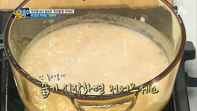 ①번에 ②번을 넣고, 바닥에 눌어붙지 않게 저어주며