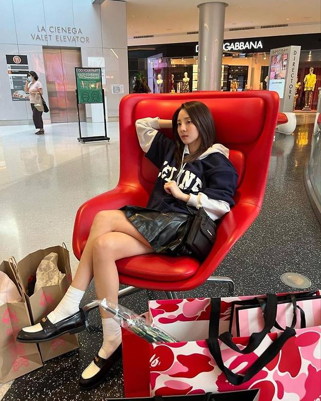 아니, 이 언니 정말 내년에 마흔 살 맞아? 프레피룩을 본인만의 스타일로 갓벽하게 소화한 산다라 박. 후드티 위에 반팔 티셔츠를 매치하고 가죽 미니 스커트를 스타일링했다. 여기에 귀여운 로퍼로 마무리! 산다라박의 믹스매치 신공이 스타일리쉬하게 드러난 착장.