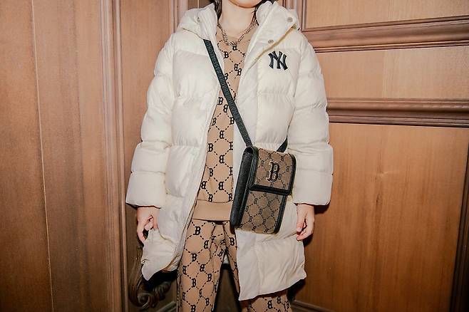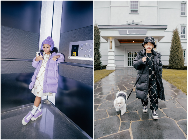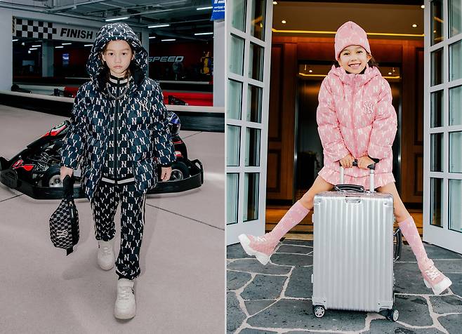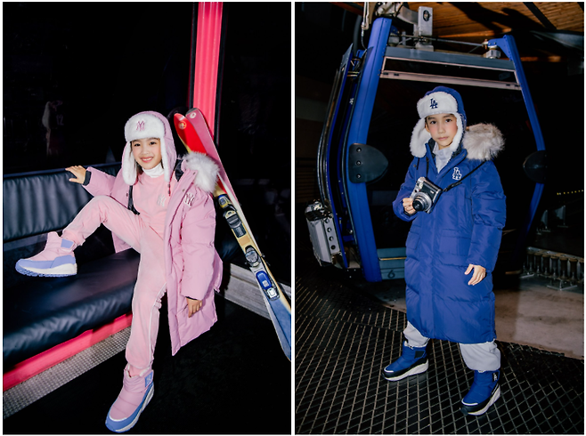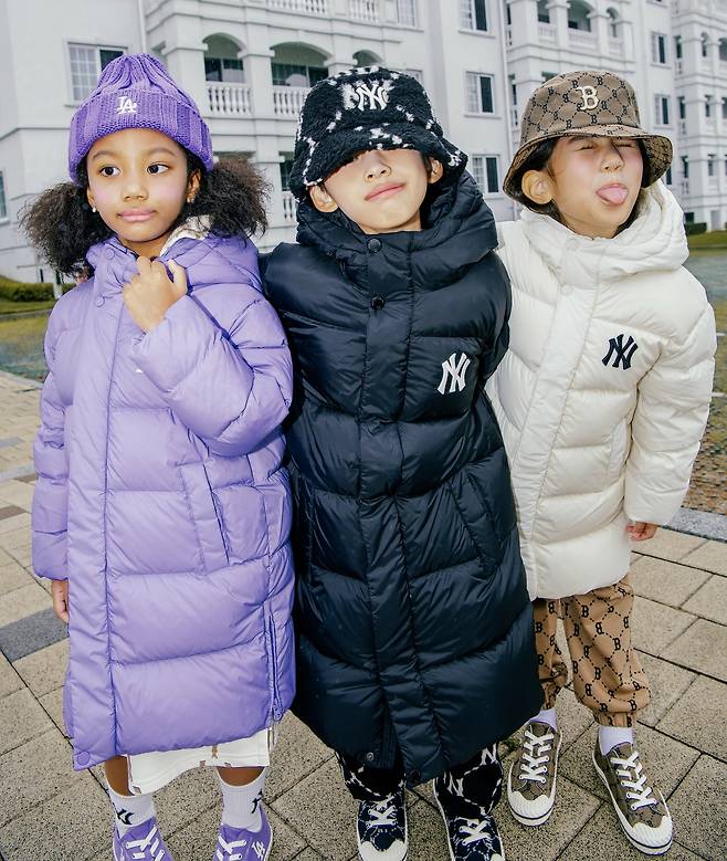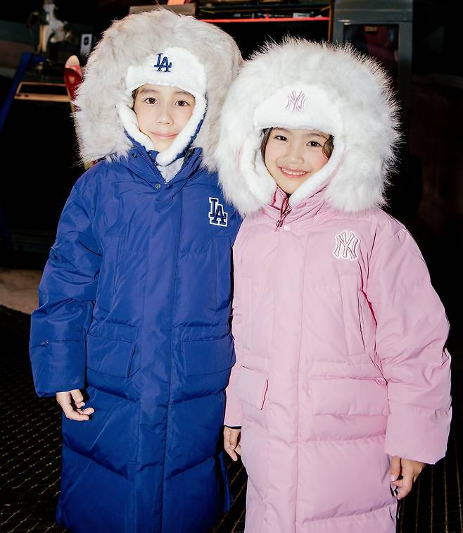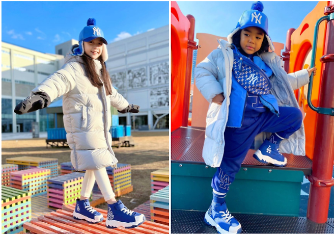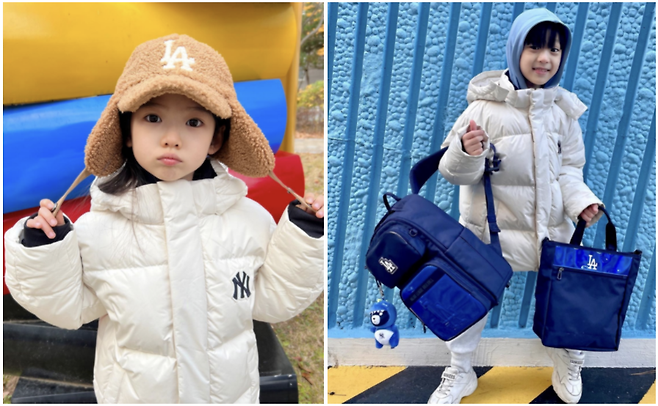 MLB키즈의 패딩으로 멋을 낸 모습을