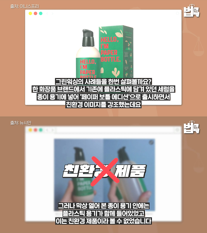 사실은 일부 과정만 부각해서 친환경 제품처럼 포장한 것들이 대표적인 사례임