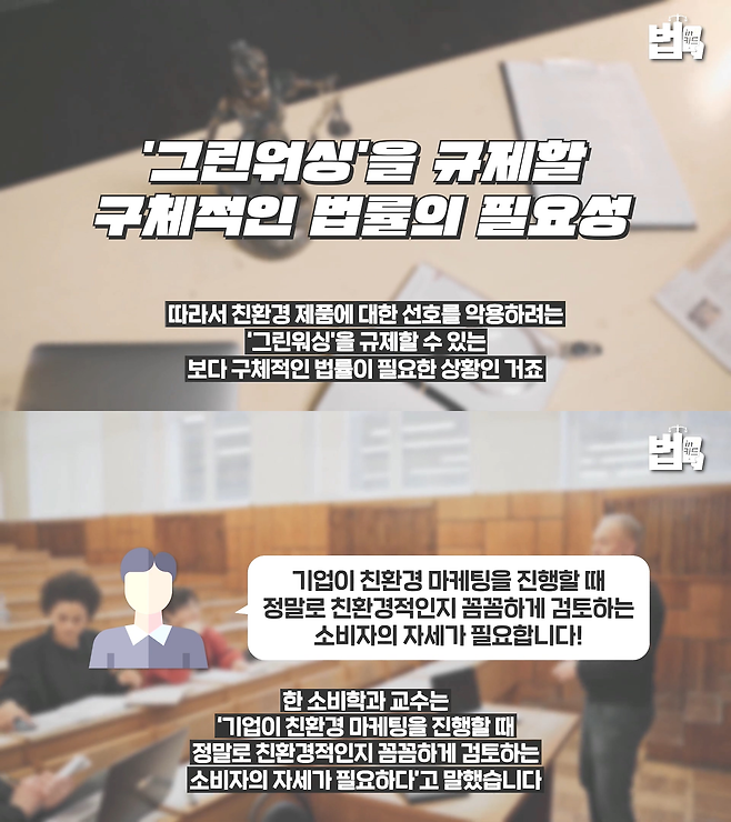 그린워싱을 규제할 수 있는 구체적인 법률이 필요한 상황임은 말할 것도 없고,