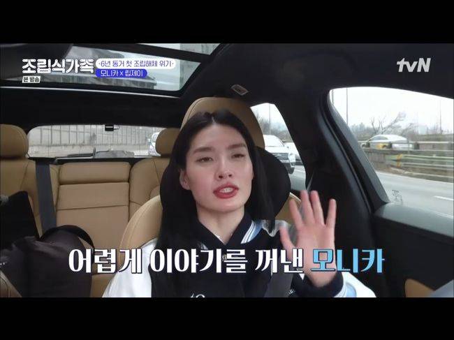 6일 방송된 tvN 예능 ‘조립식가족'에서는 십자인대 파열을 수술하는 립제이와 그런 립제이를 정성스럽게 수발드는 모니카가 등장했다. 모니카는 립제이의 수술 당일, 입원 준비부터 시작해 병실에서 먹을 과일 등을 챙기며 직접 운전해 립제이를 병원으로 데려다 주었다. 병원으로 향하는 길, 무겁게 내려앉을 게 빤하지만 모니카는 애써 분위기를 살렸다.