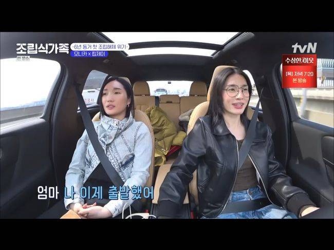 모니카는 "효원이(립제이 본명) 차로, 제가 운전해서 간다"라며 거듭 립제이 모친의 불안을 종식시켰다. 립제이는 "저번에 엄마가 차 태워달라고 해서 내가 운전했는데"라고 말하자 모니카는 “어머니 모시고 운전하지 마”라고 말했다. 립제이는 항변하 듯 “엄마가 타고 싶다고 했어”라고 했으나 모니카가 “엄마가 큰 용기 내셨다”라고 말하며 더는 말하지 않았다. 이에 이용진은 "립제이 씨가 운전을 못하냐"라고 물었다. 모니카는 "드럽게 못한다"라고 말하며 웃음을 자아냈다.
