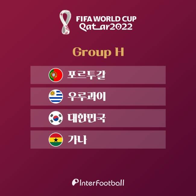 파울루 벤투 감독이 이끄는 대한민국 축구 국가대표팀은 H조에 편성돼 포르투갈, 가나, 우루과이와 맞대결을 펼치게 됐다. 한국은 포지션 포트에서 4번 자리에 위치하게 되면서 우루과이, 가나, 포르투갈 순서로 만나 16강 진출을 다투게 됐다.