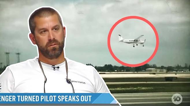 마치 비행실습이라도 하듯이 침착하게 관제사의 안내를 받아 비행기를 조종한 승객은 바로 이 사람 대런 해리슨씨. 사건이 벌어졌을 때 해리슨씨는 경비행기 뒷좌석에 이렇게 맨발을 뻗은 채 쉬고 있었습니다. 바하마에서 낚시여행을 마친 뒤 집으로 돌아가던 길이었거든요. 그때 갑자기 파일럿이 두통을 호소하더니 쓰러져버렸고 해리슨씨가 조종석으로 건너가는 그 순간 비행기는 바다를 향해 무려 800m나 곤두박질치기 시작했죠.
