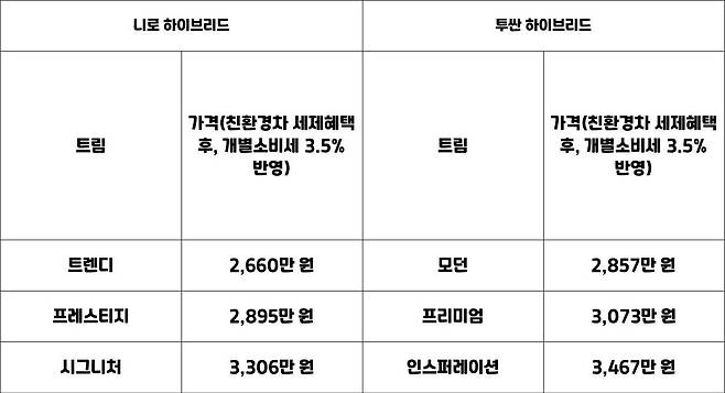 물론 풀 옵션 모델을 고집하는 사람이 많지 않기 때문에, 두 차의 가격과 사양을 트림별로 꼼꼼히 비교해봤다. 어떤 트림을 구입하는 게 현명할까?