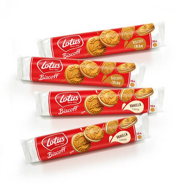 바삭한 비스킷과 달콤하고 부드러운 크림이 매력적인 ‘로투스 비스코프 샌드’도 국내에 정식으로 출시됐다. 향긋한 계피 향이 풍기는 달콤한 비스킷 속에는 바닐라 맛 크림 또는 캐러멜 맛 비스코프 크림이 풍부하게 들어가 있다. 제품은 순 식물성 원재료를 사용했으며, 트랜스 지방과 콜레스테롤이 들어가 있지 않다. V-LABLE 비건 인증을 받은, 동물 유래 성분이 없는 순 식물성 과자다.