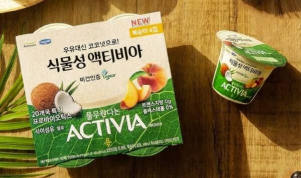 풀무원다논은 비건 인증 대체 요거트 신제품을 내놓아 주목을 받고 있다. ‘식물성 액티비아’라는 이름의 이 제품은 식물성 원료인 코코넛을 사용해 만든 대체 요거트로, 한국비건인증원으로부터 비건 인증을 취득한 제품이다. 출시 3개월 만에 누적 100만 컵 판매를 기록할 만큼 인기를 끄는 제품으로, 우유 대신 코코넛이 사용돼 유제품 섭취가 어려운 이들도 편하게 즐길 수 있는 요거트다.
