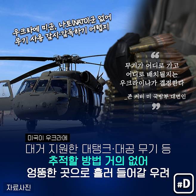 이런 가운데 미국 등이 대거 무기를 지원하는 우크라이나가 '거대한 무기 블랙홀'이 될 수 있다고 CNN이 미국의 군사 정보 당국자들을 인용해 보도했는데요. 우크라이나에 지원하는 대(對)탱크, 대공 무기 등을 추적할 방법이 거의 없어 해당 무기들이 장기적으로 엉뚱한 이들에게 흘러갈 수 있다고 우려합니다.