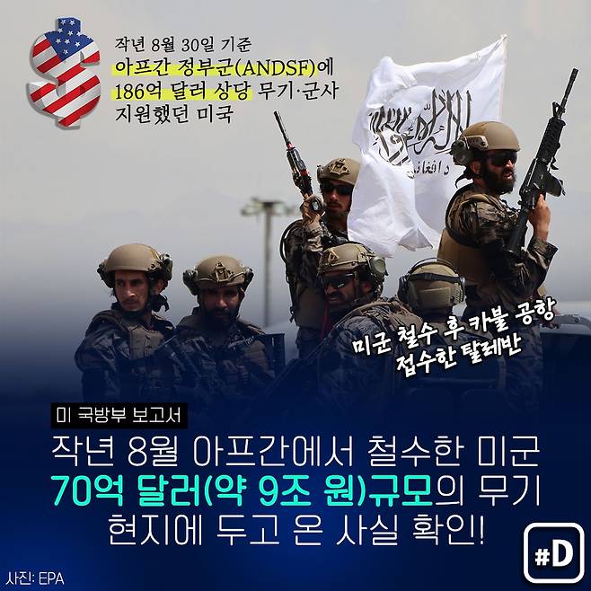 지난해 8월 아프가니스탄에서 철군한 미군이 현지에 70억 달러(약 9조 원) 규모의 무기를 두고 온 것으로 확인됐는데요.