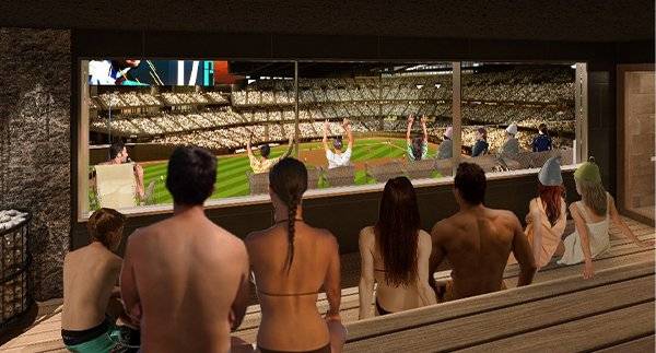 다음달 2일 프로야구가 개막한다. 응원단의 구호에 맞춰 좋아하는 팀을 응원하는 것도 재미지만 자리에 앉아 치킨과 맥주를 곁들이면서 분위기를 즐기는 것도 좋다. 여기에 더해 사우나를 하면서 야구를 보는 방법이 등장했다.