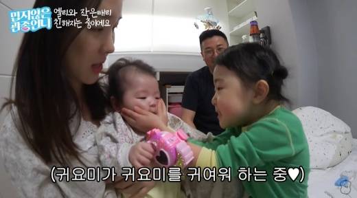 태리는 동생 엘리의 얼굴을 만지며 예뻐하는 모습을 보였다. 이지혜는 "엘리가 너무 순하다"라며 "예전에는 엘리를 안으면 태리가 난리 났었다. 지금은 괜찮다. 많이 좋아졌다"라고 말했다. 실제로 이지혜가 아이를 안고 있는 동안 태리는 불안해하는 기색 없이 엘리의 볼을 감싸고 "귀엽다"라며 말을 걸었다.