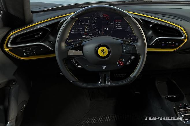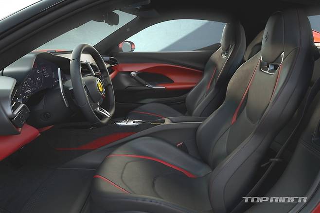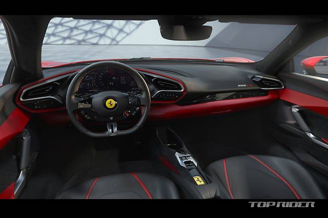 실내는 SF90 스트라달레와 유사한 풀 디지털 인터페이스를 토대로 구축됐다. 계기판은 운전석에 집중됐으며, 조수석은 미니멀한 형태다. 296 GTB에는 EPA와 통합된 최초의 ABS 에보 컨트롤러가 탑재됐다. 제동 거리가 단축됐다. 반복적인 급제동에서 일관성을 보장한다.