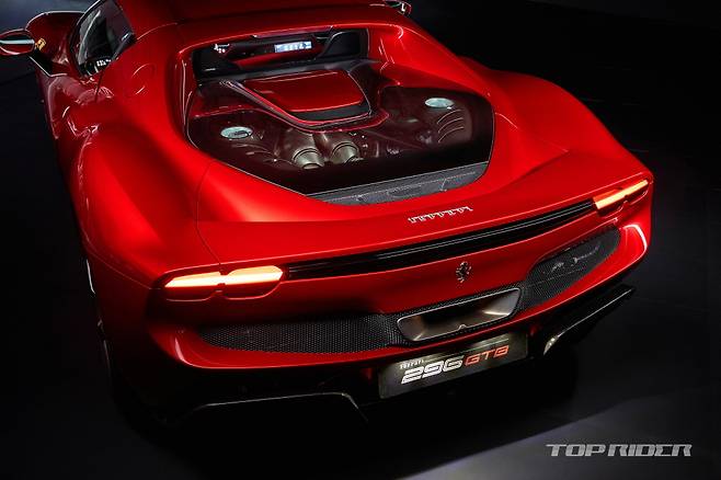 296 GTB는 미드리어 엔진을 장착한 2인승 베를리네타의 최신작이다. 엔진은 663마력을 발휘하는 120도 V6 엔진으로 추가출력 167마력을 지원하는 전기모터와 조합됐다. 합산 총 출력은 830마력이다. V6 엔진은 221마력/ℓ에 이르는 비출력으로 양산차 신기록을 달성했다.