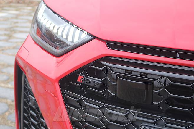RS7 디자인은 아우디의 슬로건 '기술을 통한 진보'를 시각적으로 잘 보여준다. 외관 전면부는 곳곳을 뚫어낸 범퍼 디자인으로 과감한 인상을 만들었다. 벌집 패턴의 새까만 그릴엔 전방 카메라와 레이더 등 운전자 보조 시스템을 위한 센서를 삽입했다. 운전의 즐거움을 상징하는 RS7 로고와 묘한 대조를 이룬다.