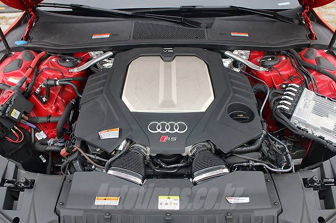 동력계는 V8 4.0ℓ 트윈터보 엔진을 얹어 최고 600마력, 최대 81.5㎏·m의 토크를 발휘한다. 더 끌어올릴 수 있는 여지가 있었지만 브랜드 스페셜리스트인 R8 V10(610마력)을 넘볼 수 없었기에 10마력 차이를 뒀다. 그래도 가속력은 말 그대로 넘쳐 난다. 회사가 밝힌 0→100㎞/h 가속시간은 3.6초다. 짧은 시간이지만 몇 번의 변속 충격을 겪다 보면 더 짧게 느껴진다. 8단 팁트로닉 자동변속기는 변속이 꽤 빠르고 영민하다.