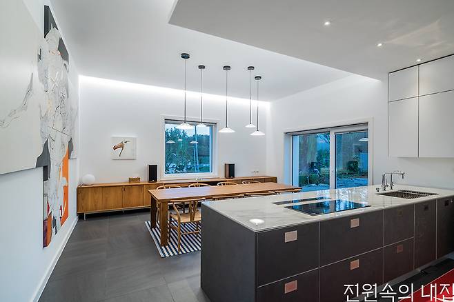 실내는 성격이 다른 외부 공간과 자연스럽게 연계되고, 산과 저수지, 버드나무를 감상할 수 있는 최적의 조망 포인트를 놓치지 않으면서 땅이 가진 경사지의 특성도 영리하게 이용했다. 공들인 설계를 완성시키는 것은 탄탄한 시공. “집의 지속가능함이란 거주자가 하자 없이, 쾌적하게 오랫동안 지낼 수 있도록 만드는 것이고, 이에 대해 패시브하우스는 과다한 비용 없이 축적된 기술과 노하우로 문제를 해결할 수 있는 솔루션이 있다”는 윤 소장의 가치관과 제안은 패시브하우스에 준하는 설계와 시공으로 이어졌다. 하나를 사더라도 제대로 된 것을 선택하는 건축주에게도 합리적인 결정이었다.