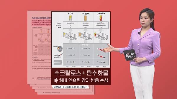 "수크랄로스가 인슐린 분비에 여러 가지로 영향을 준다 그런 얘기죠.(인슐린이) 정상적인 혈당에 대해서 반응이 있는데 떨어지는 거죠."