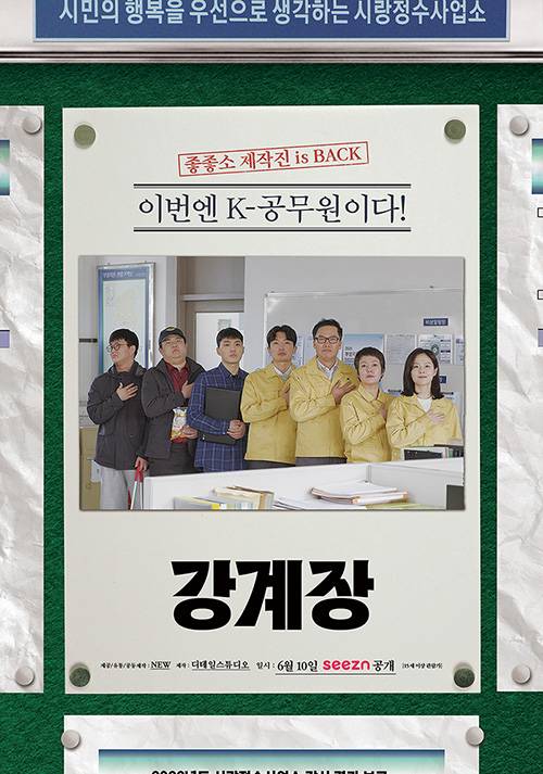 중소기업 일상을 ‘복사, 붙여넣기’ 한 듯 현실감 넘치는 스토리를 자랑했던 웹드라마 '좋좋소' 제작진이 신규 웹드라마로 돌아왔다. 이번엔 시즌(seezn)과 손 잡고 오리지널 콘텐츠 '강계장'(감독 이태동)을 선보인다. 사회복무요원 기주(김기주)의 시선으로 K 공무원 나아가 K 직장인 현실을 100% 담아내겠다는 포부로 뭉친 이들은 '좋좋소'에 버금가는 현실감과 섬세한 연출, 배우들의 열연까지 한 층 더 업그레이드된 리얼 풍자극을 선사한다.