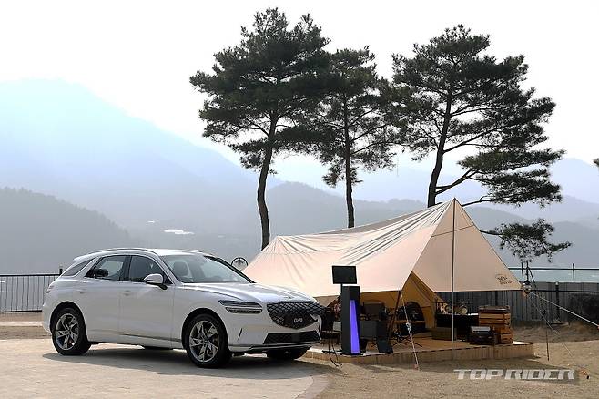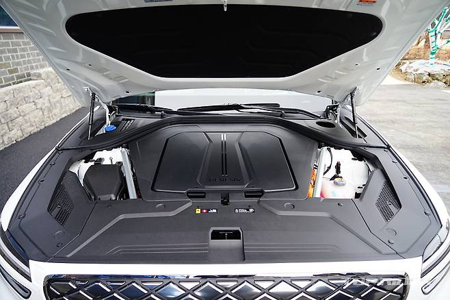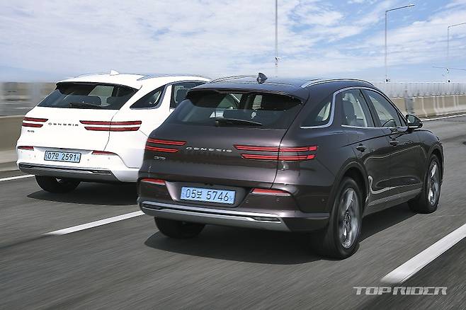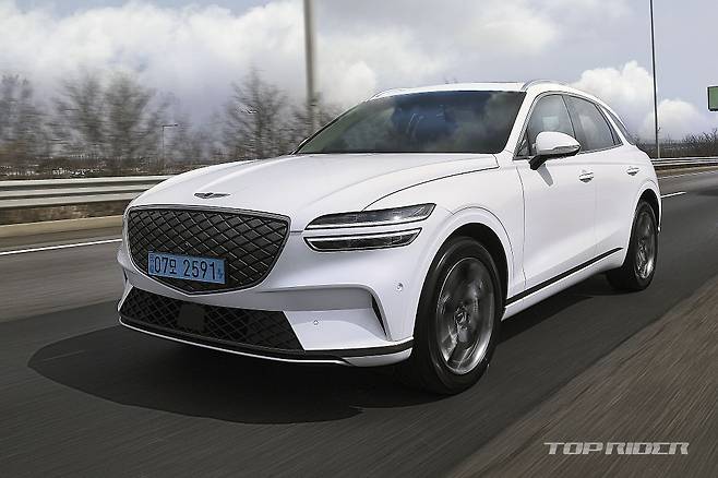 전자식 서스펜션은 90km/h 기점으로 좌우 롤을 억제하고, 스포츠 모드에서는 댐퍼가 단단해져 노면 정보를 전달하기 시작한다. 탄탄함을 기반으로 하지만 승차감을 강조한 설정이다. GV70 내연기관 모델의 서스펜션을 그대로 옮겨 무게만 증가한 것처럼 느껴진다.
