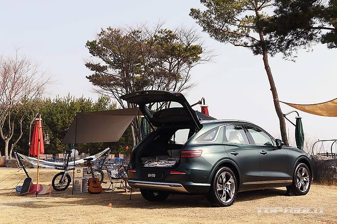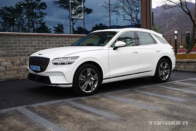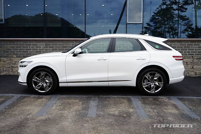 GV70의 실루엣은 기본적으로 쿠페형 SUV를 추구하고 있어 젊고 스포티한 감각이 강하다. 전장 4715mm, 전폭 1910mm, 전고 1630mm, 휠베이스 2875mm의 차체는 BMW X3나 벤츠 GLC와 유사한 크기다. 운전과 주차, 실내 거주성을 함께 만족하는 적절한 구성이다.