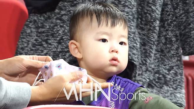이날 흥국생명 김해란의 아들 조하율 군이 경기장을 찾아 엄마를 응원했다. 경기 전후 귀여운 모습을 영상으로 담았다.