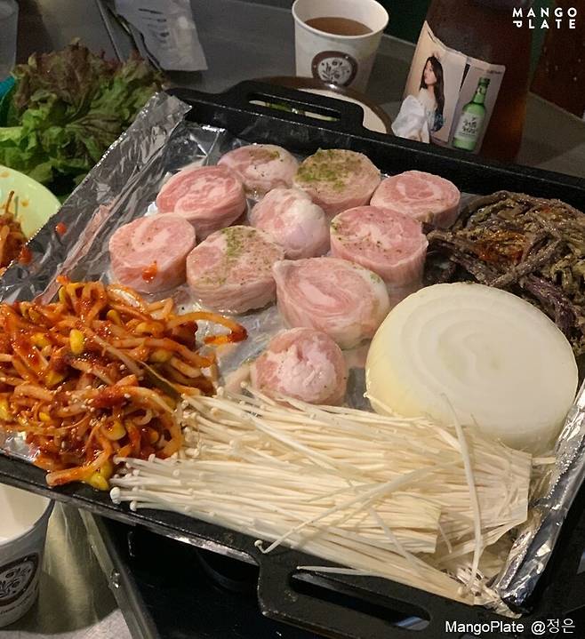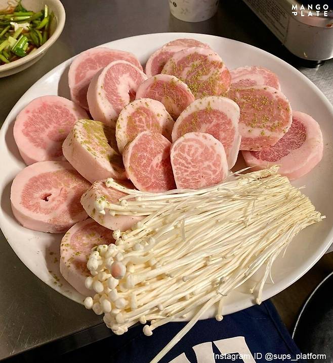 항정살을 동그랗게 말아 썰어내 눈으로 보는 재미까지 더했어요.