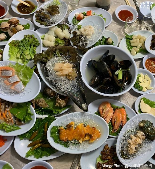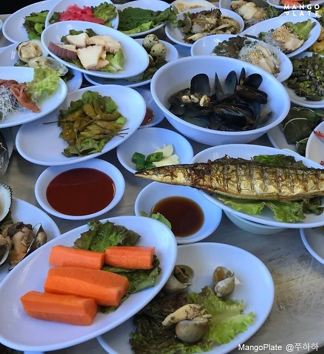 제철회, 랍스터, 물회, 산낙지, 낙지호롱, 간장게장 등 각양각색 먹음직스러운 해산물부터 회를 못드시는 분들 위한 삼계탕, 불고기까지. 반찬은 그야말로 없는게 없어요.