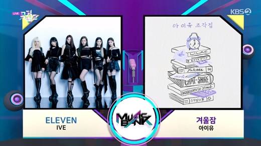 이날 1위 후보에는 아이브의 '일레븐(ELEVEN)'과 아이유의 '겨울잠'이 올랐다.