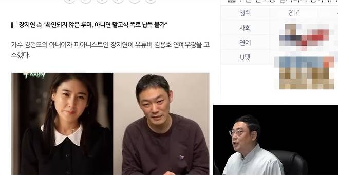 (엑스포츠뉴스 이창규 기자) 가수 김건모의 아내이자 피아니스트 장지연의 이성 관계를 폭로한 유튜버 김용호가 2년 간 아무런 증거를 제출하지 못했다는 주장이 제기됐다.