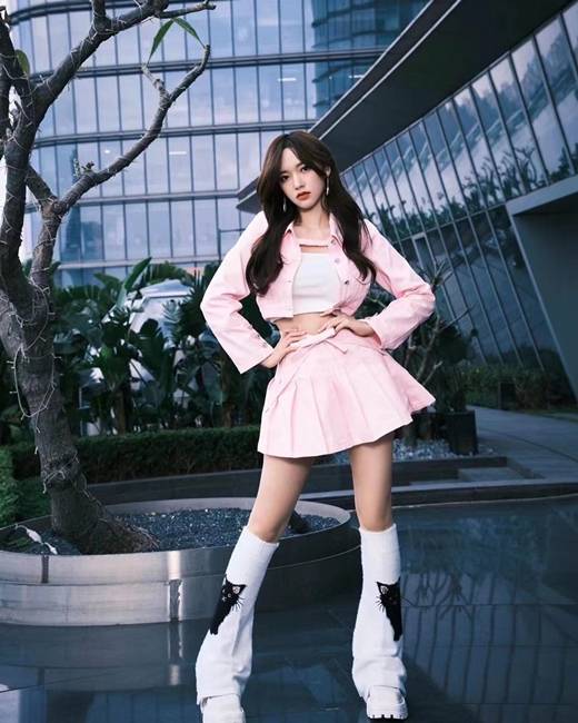 사진 속 성소는 설명처럼 핑크색 의상을 입은 채 포즈를 취하고 있다. 특히 우주소녀 활동 시절부터 주목받은 우월한 비율이 시선을 끈다.