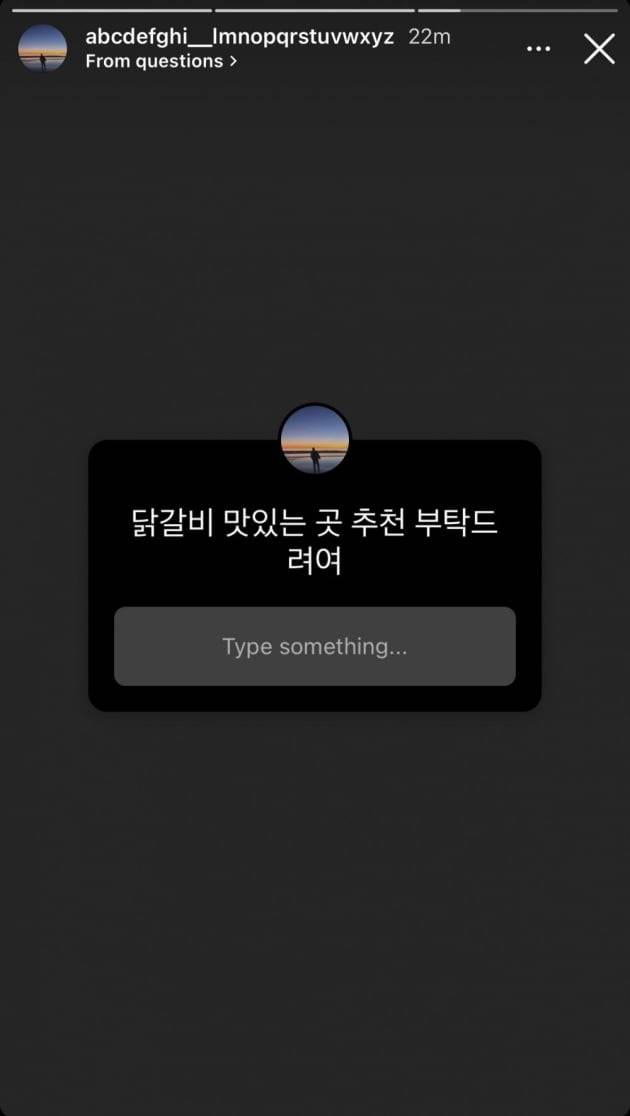 지난 2월 27일 정국은 자신의 인스타그램스토리에서 "닭갈비 맛있는 곳 추천 부탁드려여" 라는 질문을 던지며 닭갈비 맛집 추천을 부탁했다.