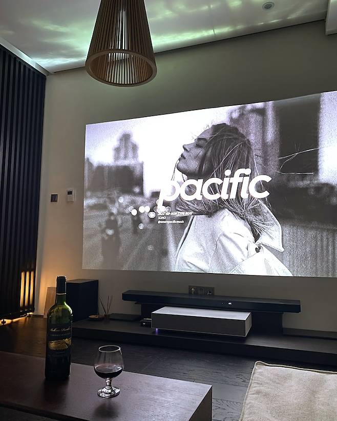 파티션 덕분에 공간이 분리되어 더욱 아늑한 느낌이 들어요. 이곳에서는 프로젝터를 설치해 두어서 영화나 게임을 즐기며 편안한 시간을 보냅니다.