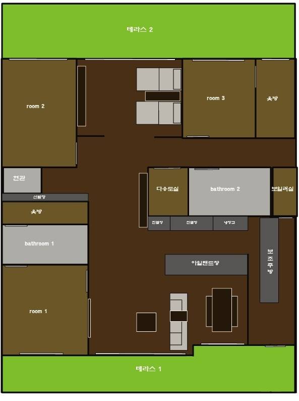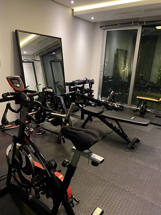 도면상 방이 총 3개인데요 하나는 앞에 보여드린 침실, 다른 하나는 게스트룸으로 사용하고 있어요. 그리고 나머지 하나가 바로 이 방, Room3 입니다. 이곳은 남편의 꿈을 펼치는 헬스장으로 만들었습니다. 처음엔 의욕 넘처서 열심히 만들었는데 지금은 잘 안 들어가는 방이 되어버렸네요. 이제 곧 여름이라 같이 운동하기로 다짐을 해 봅니다...