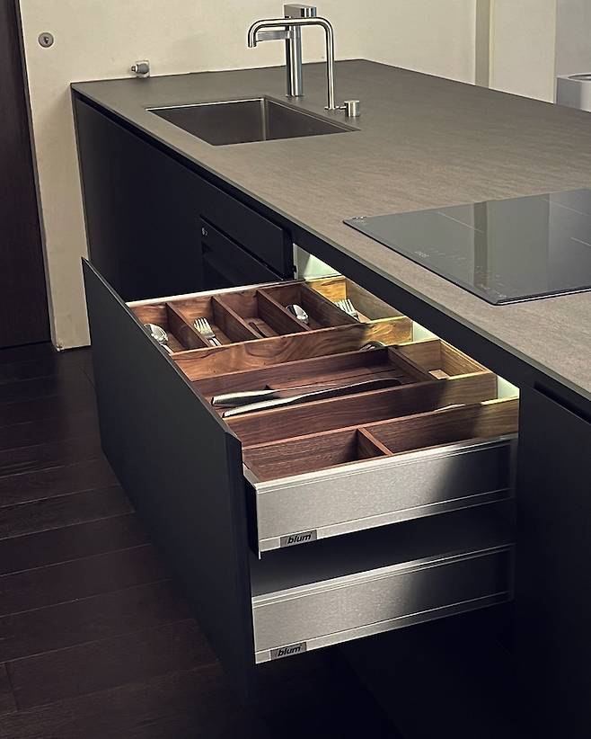 서랍을 열면 조명이 켜지도록 설정을 해놔서 사용하기 더 편리합니다.