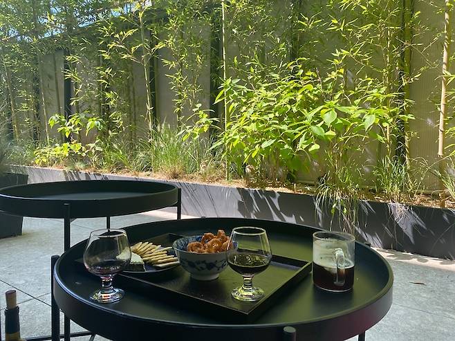 술 한 잔 마실 때도 분위기 있는 교외에 나온 느낌을 주네요.