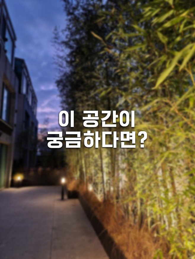 다크한 톤의 원목 테이블, 외부 테라스의 대나무 조경으로 차분한 공간을 오롯히 느낄 수 있습니다. 여기에 조명으로 은은한 분위기를 더해 주었어요.